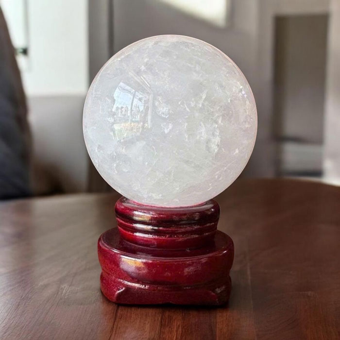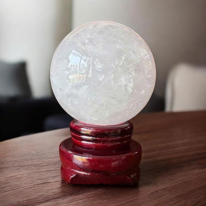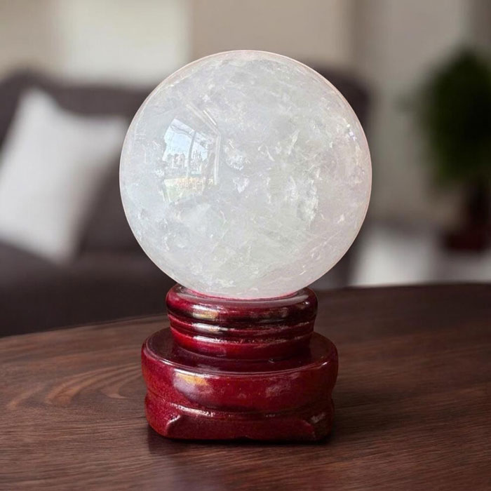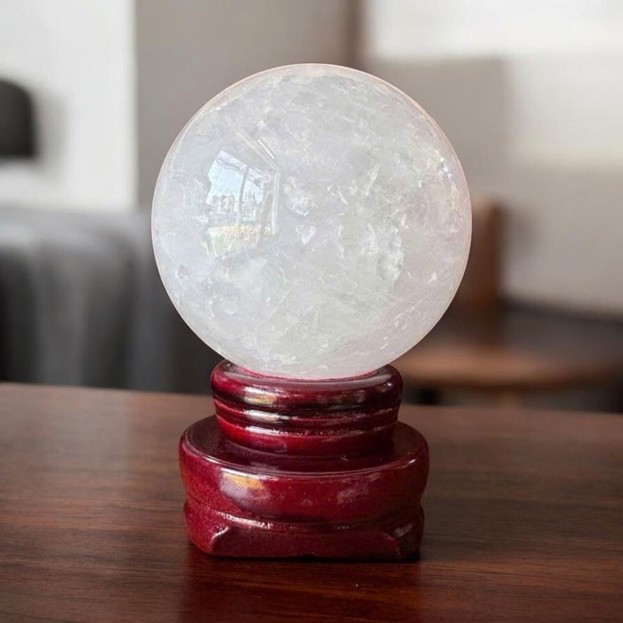 Quả cầu đá phong thủy thạch anh trắng 1,02kg phù hợp với nhiều mục đích sử dụng: