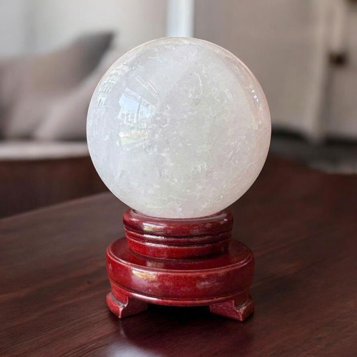 Quả cầu đá phong thủy thạch anh trắng 1,63kg phù hợp với nhiều mục đích sử dụng: