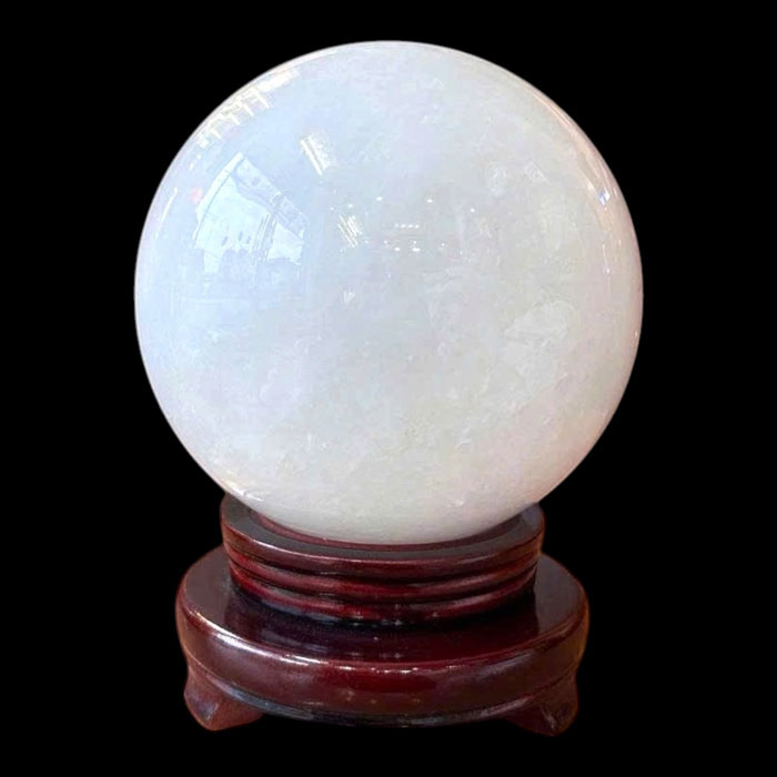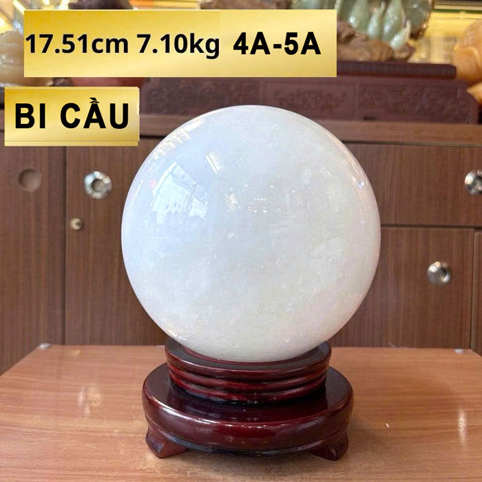Quả cầu được chế tác từ khối đá thạch anh trắng tự nhiên lớn, trải qua quá trình gia công công phu để đạt độ tròn chuẩn xác và bề mặt bóng mịn. Với trọng lượng lên đến 7,1kg, sản phẩm mang lại cảm giác bề thế, vững chắc và cực kỳ nổi bật khi trưng bày.