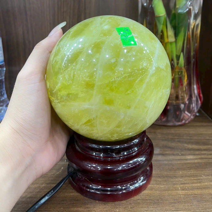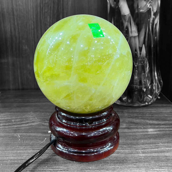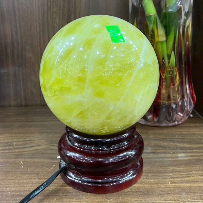 Bạn đang tìm hiểu "Quả cầu đá phong thủy thạch anh vàng"