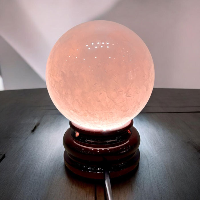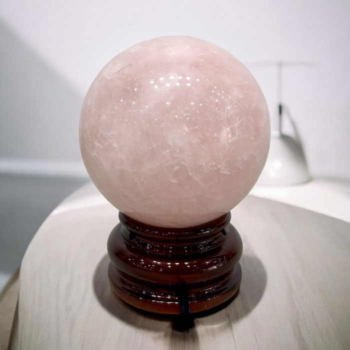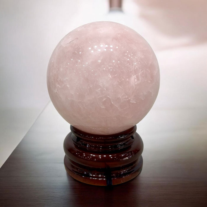 Đá thạch anh hồng được xem là viên đá của tình yêu và cảm xúc. Khi chế tác thành quả cầu, năng lượng được lan tỏa đồng đều theo mọi hướng.